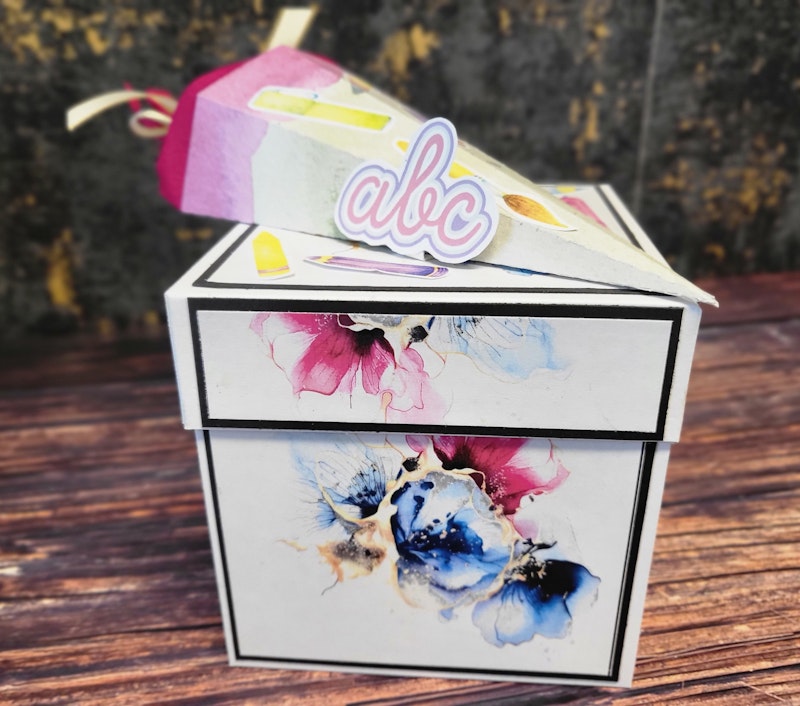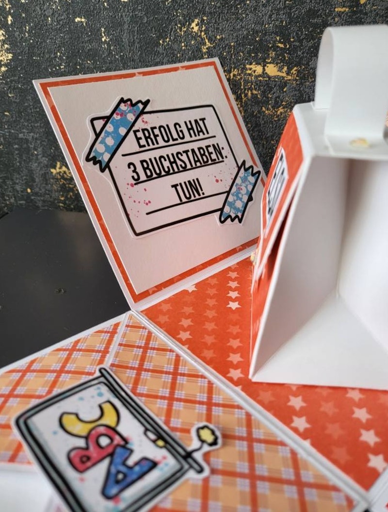 Wunderschöne mit ganz viel Liebe hergestellte Explosionsbox zum Thema Schulanfang ideal zum Verschenken von Gutscheinen oder Geld.